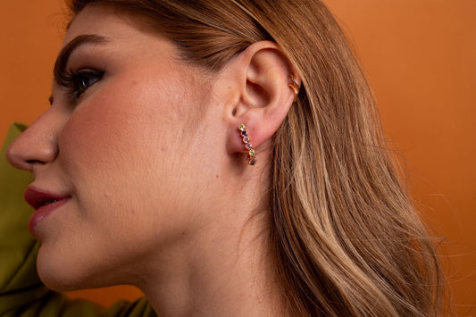 A variety of styles and materials are employed to create our earrings. We utilize natural stones, Swarovski crystals, glass crystals, resins, wood and pearls are some of the various materials we like to work with to leave each piece with its unique style. All the metal parts are handcrafted in brass with gold, silver or black rhodium plating.