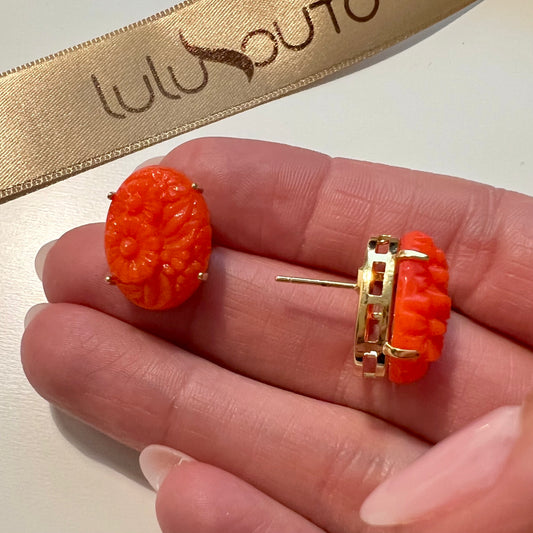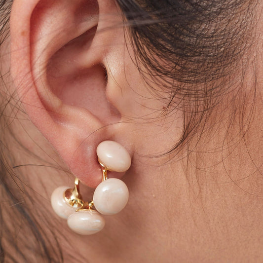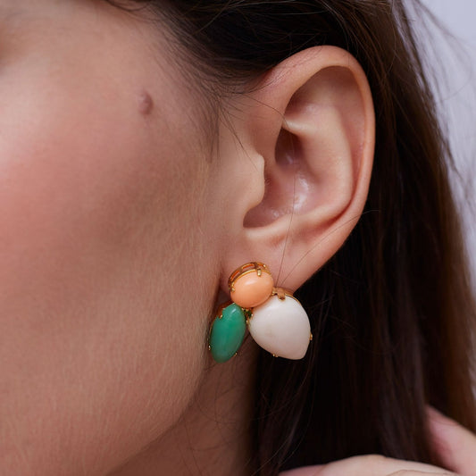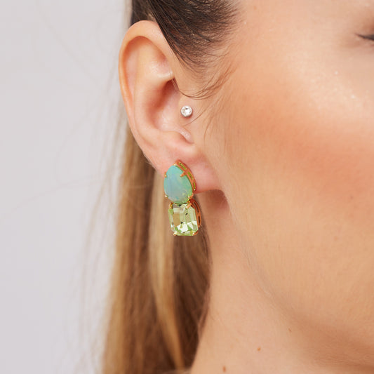 A variety of styles and materials are employed to create our earrings. We utilize natural stones, Swarovski crystals, glass crystals, resins, wood and pearls are some of the various materials we like to work with to leave each piece with its unique style. All the metal parts are handcrafted in brass with gold, silver or black rhodium plating.