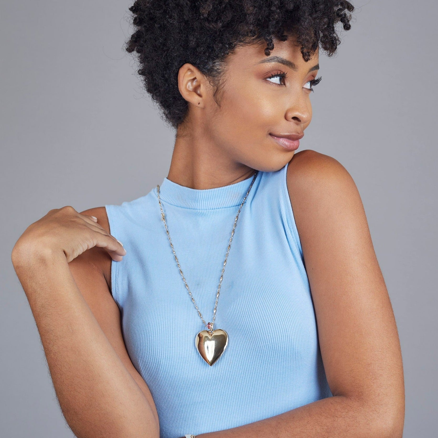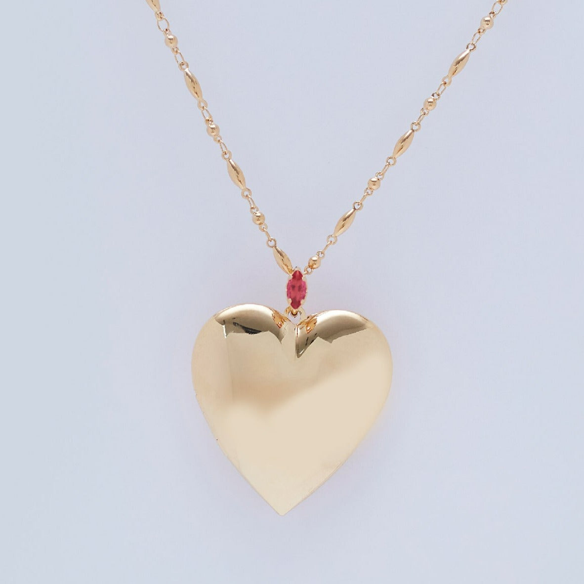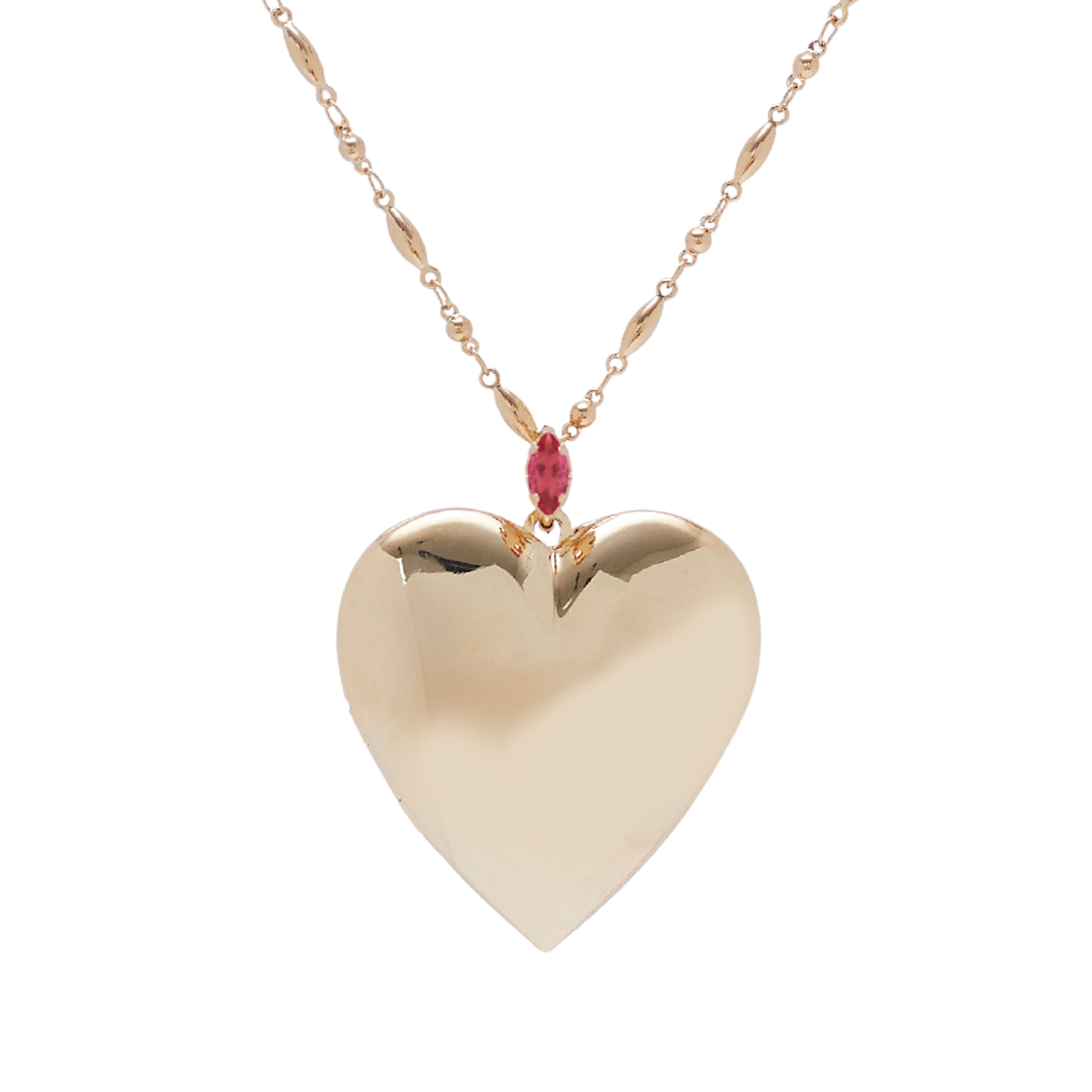 The necklace is made of brass with gold plating and pink rubellite crystal glass in detail.