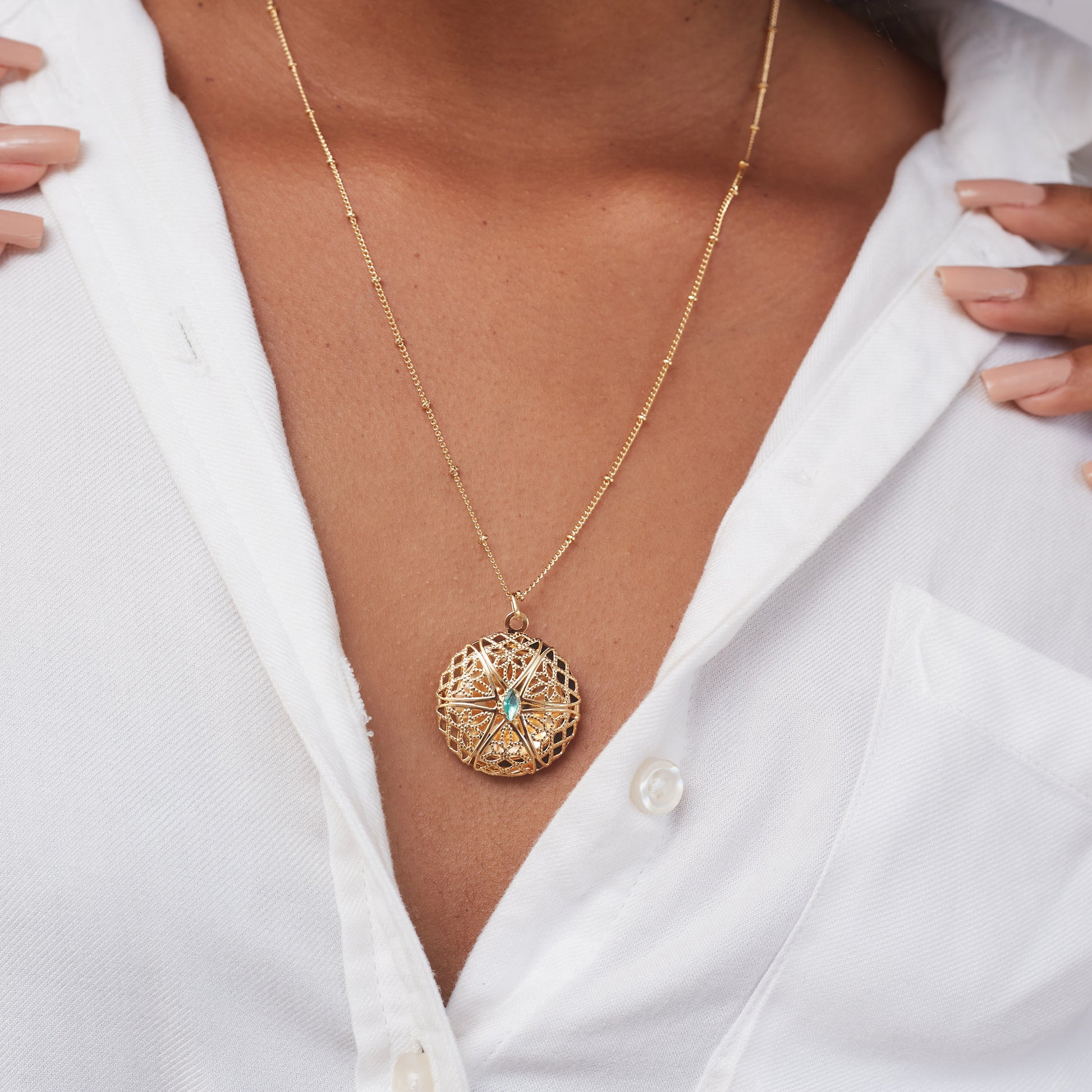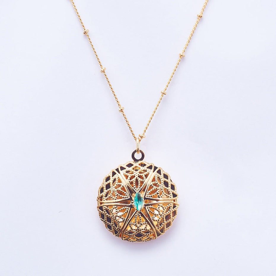 Medium Round Arabesque Locket Necklace Gold Plated