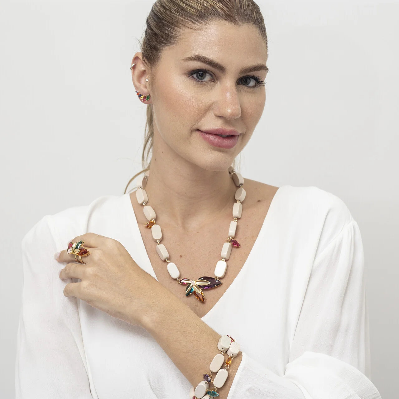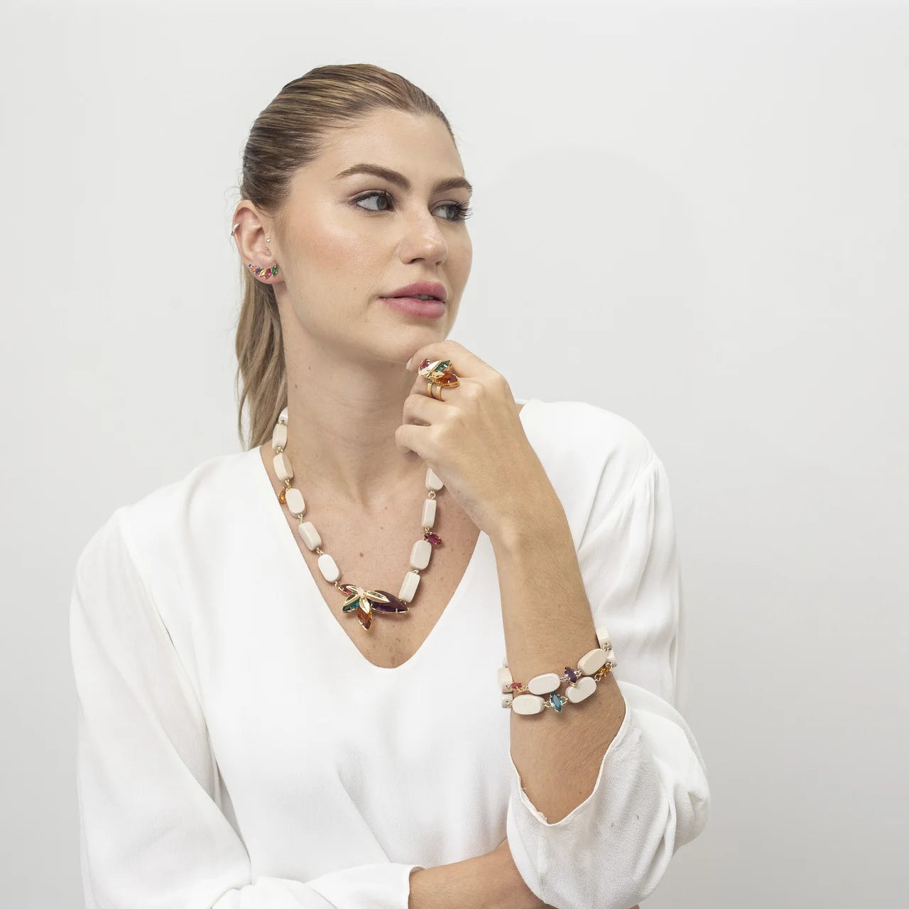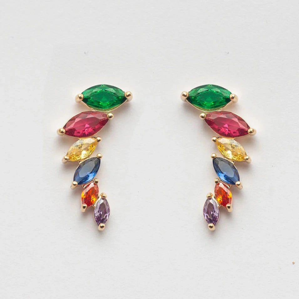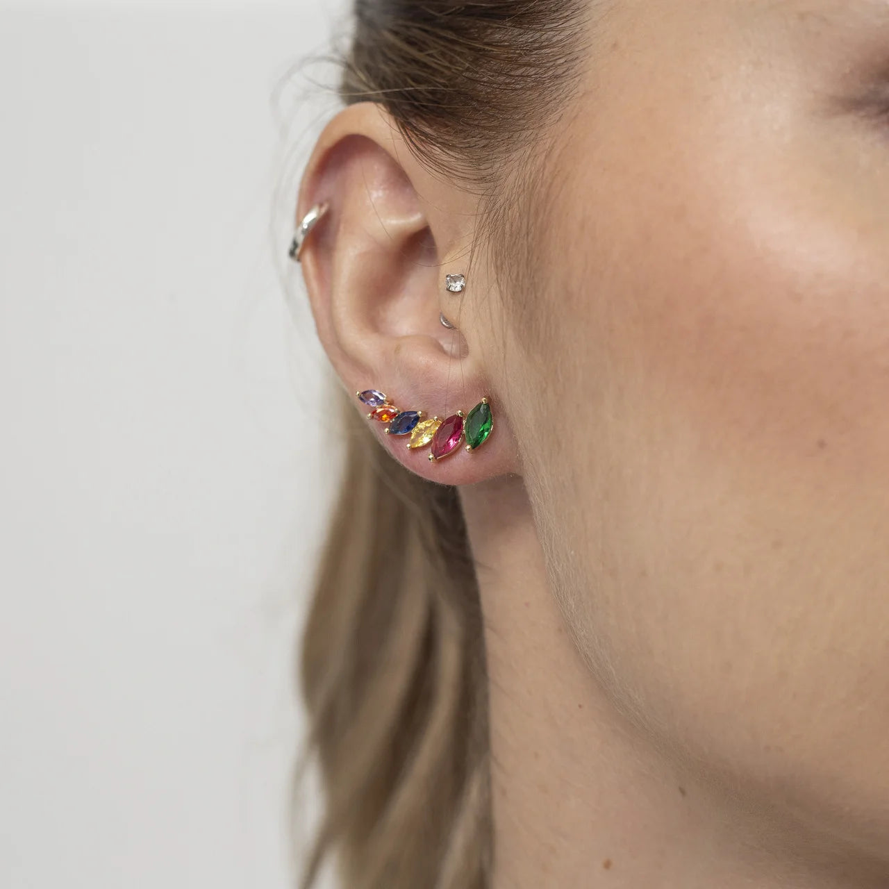 The Royale Earrings are the perfect choice for those seeking style and sophistication. Crafted from noble metal and set with colorful navette crystals, they bring a vibrant touch of color and elegance to your look. The gold plating adds shine and luxury to the piece, while the design ensures a bold and unique appearance.