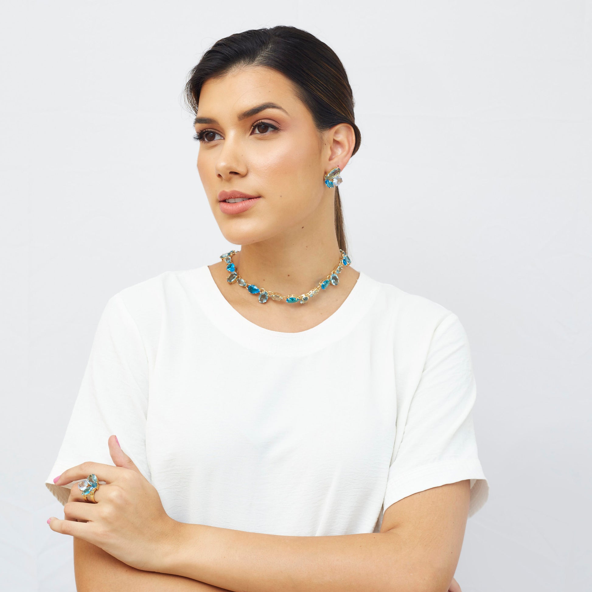 The Ring is produced by adjustable hoop, made of brass with 18k gold plating and blue glass crystals .