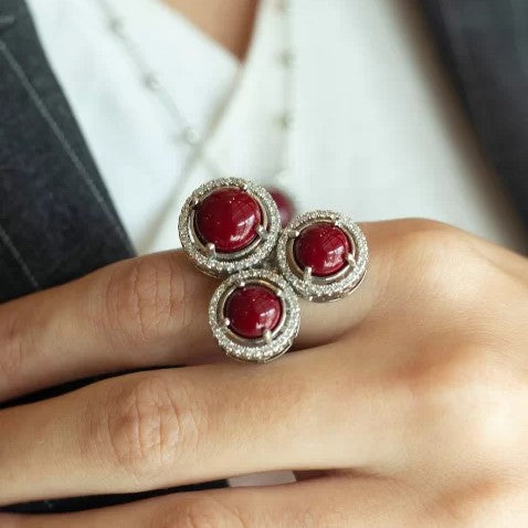 Add a touch of charm and elegance to your look with the Cherry Trio Ring and let your beauty shine on any occasion.