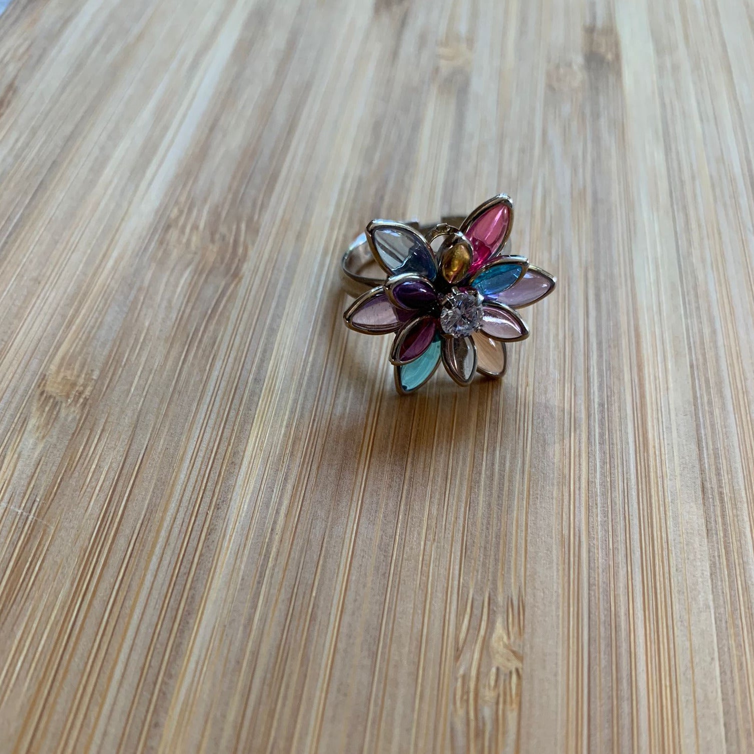 COLORED DAISY FLOWER RING WHITE RHODIUM PLATING