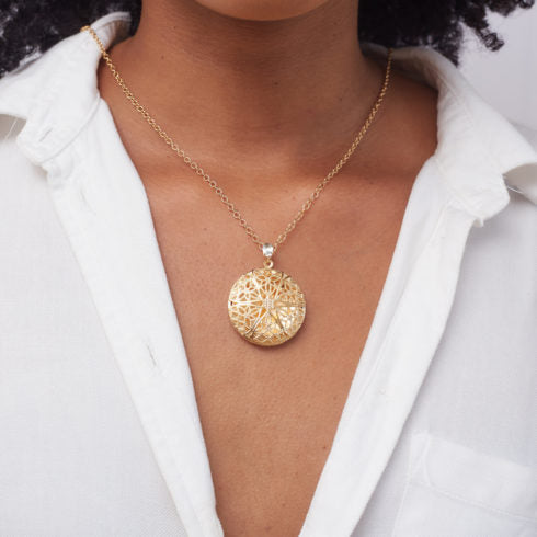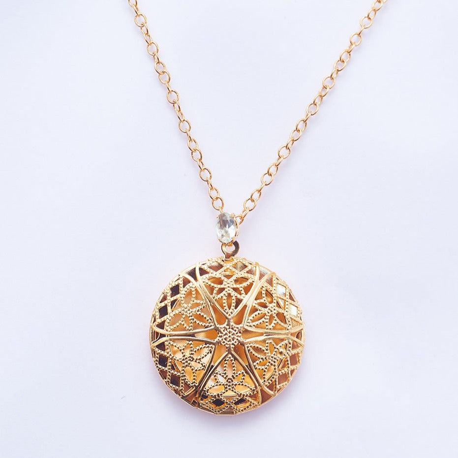 Round Arabesque Locket Necklace Gold
