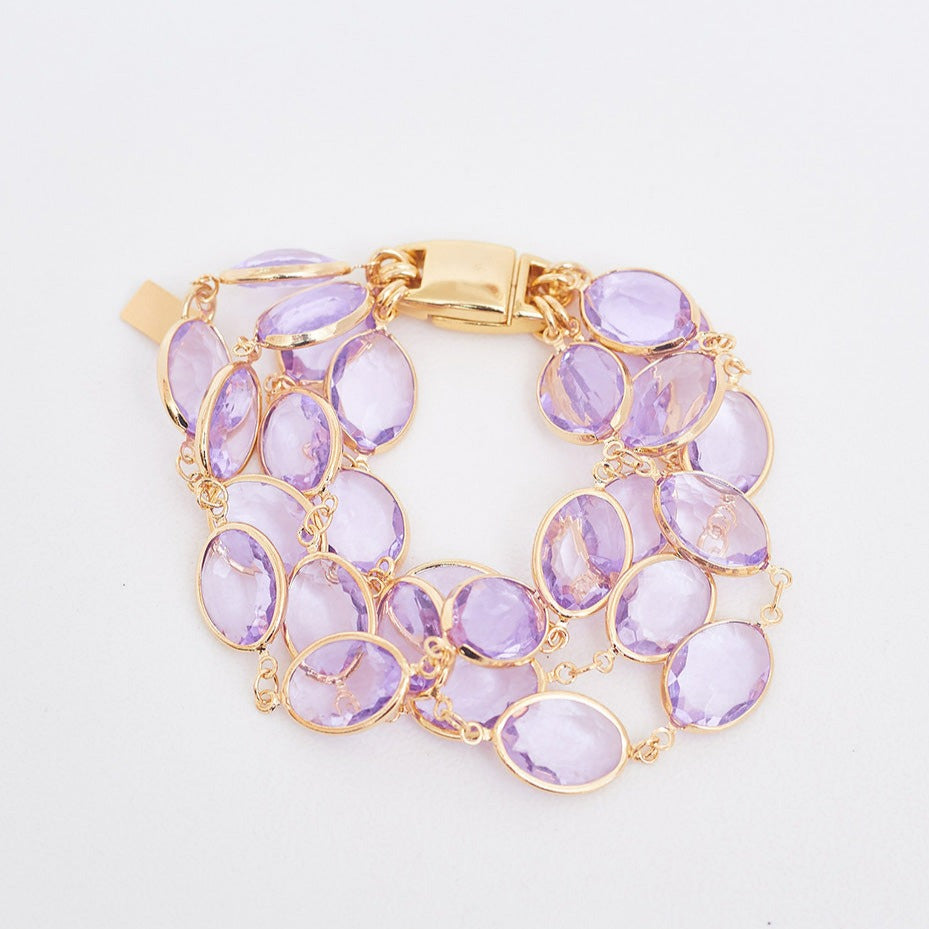 The Fly bracelet are made of 18k gold plating brass with oval lilac resins.