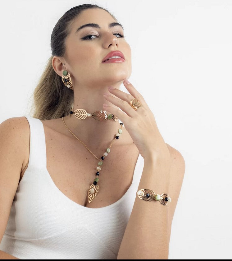Introducing Lulu Souto's Long Necklace, a piece of jewelry that embodies elegance and sophistication in an extraordinary design. This necklace is a true work of art, characterized by a delicate chain adorned with precious stone embellishments and a hollow leaf pendant.