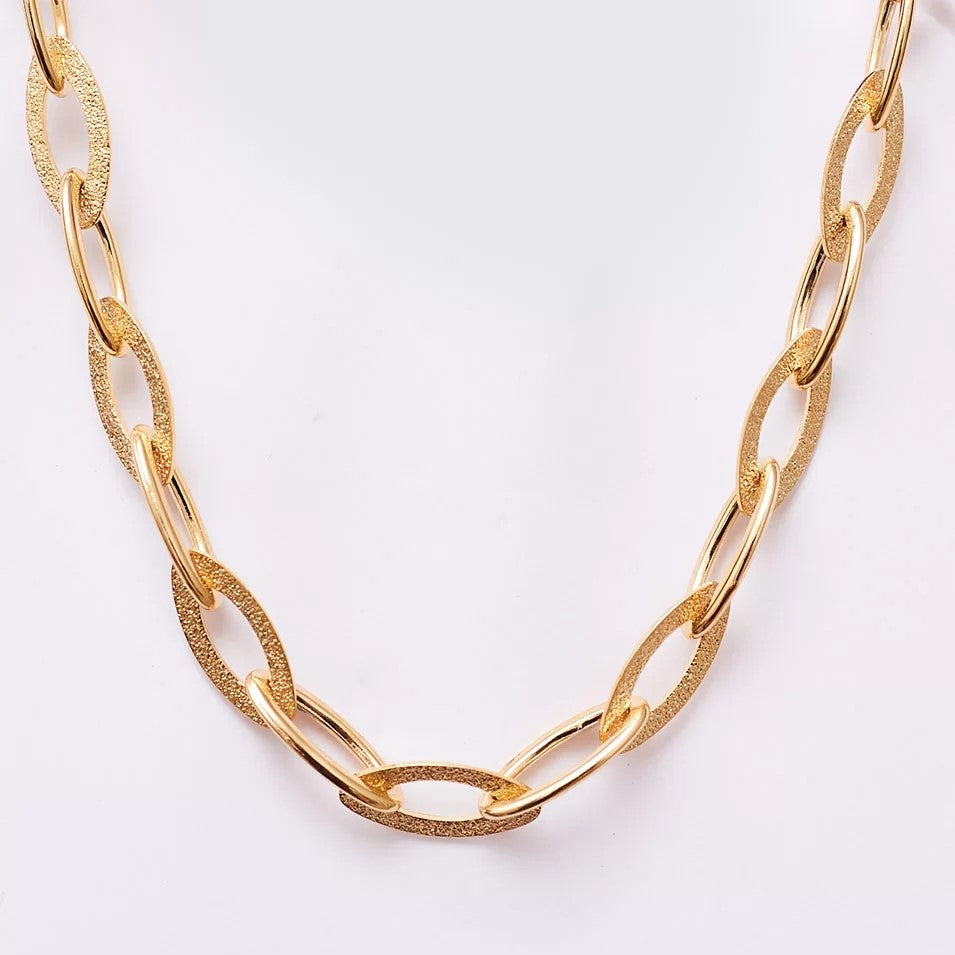 The Liga Choker features hammered oval link chain, made of fine metal and gold plating.
