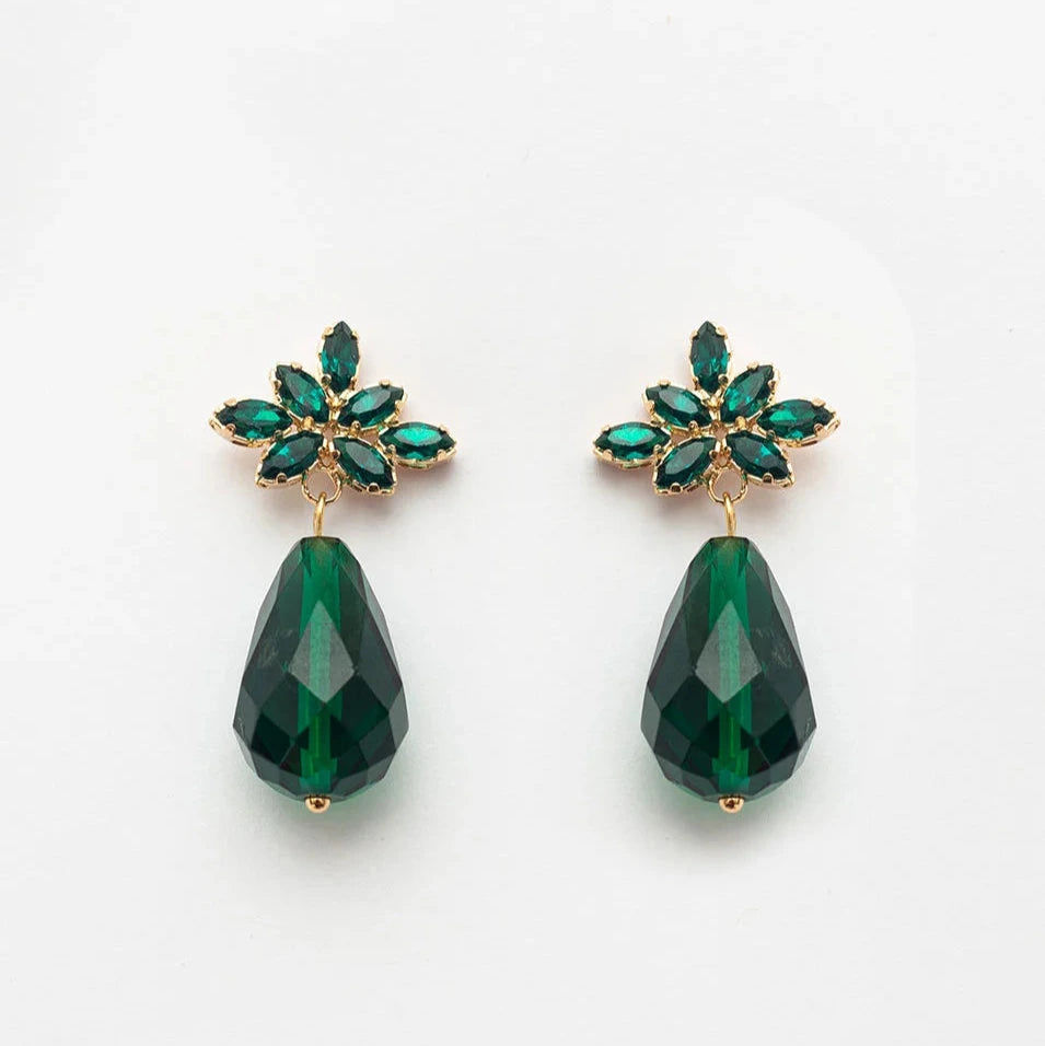 • Stones: Micro crystals + faceted emerald green teardrop crystal