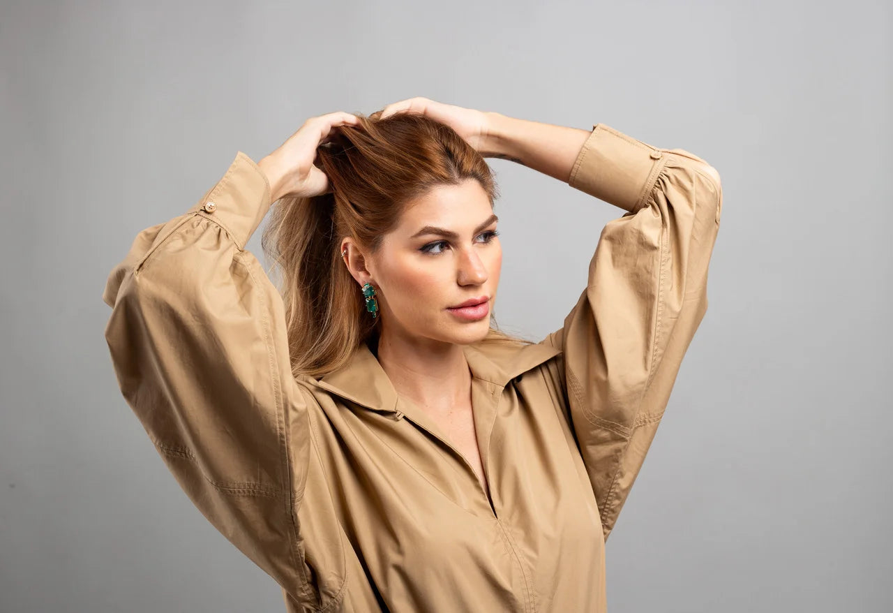 Íris Gold Plated Earrings with Emerald Green Crystal