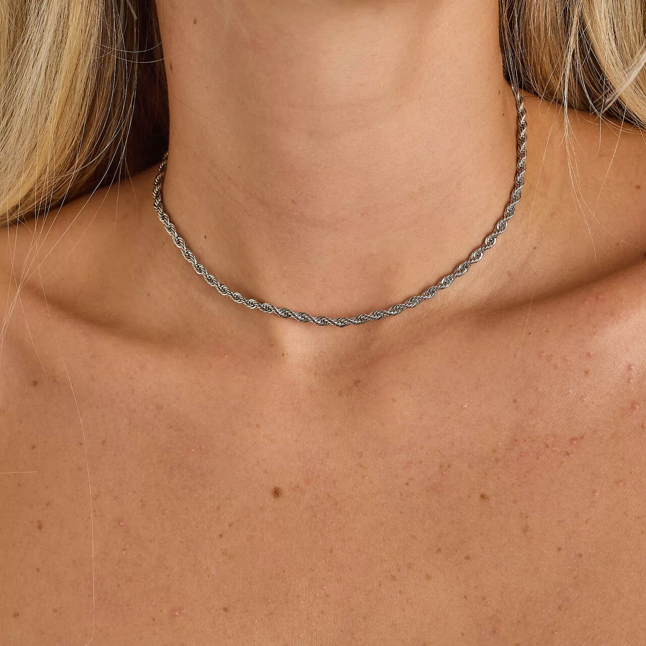 THICK TWISTED CHAIN CHOKER WHITE RHODIUM PLATING
