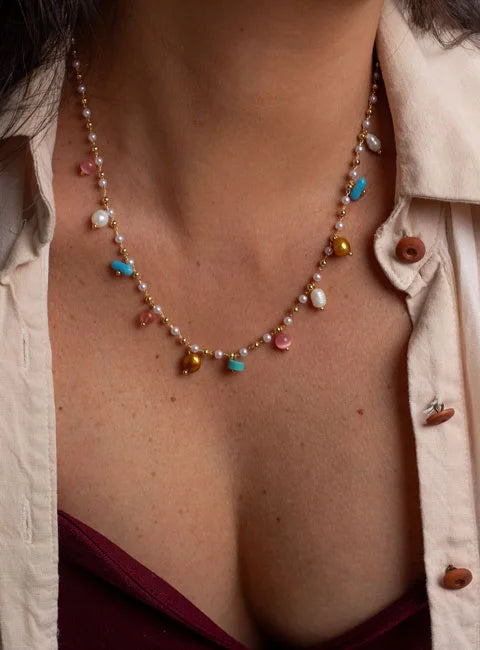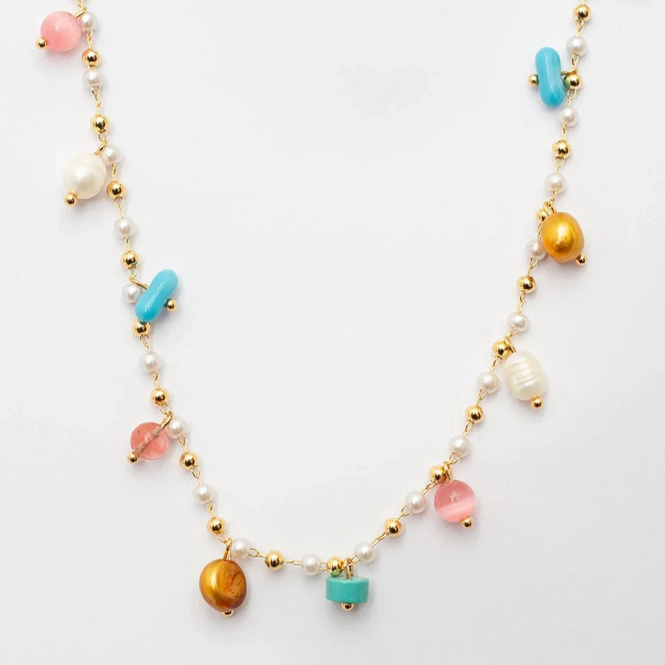 OASIS NECKLACE β€” MIX OF NATURAL STONES WITH GOLD PLATING